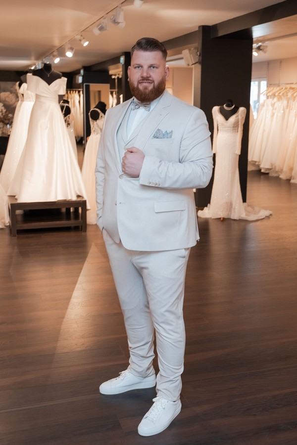 „Führt ihr Anzüge in Übergröße für Bräutigame und auch Hochzeitsgäste?“